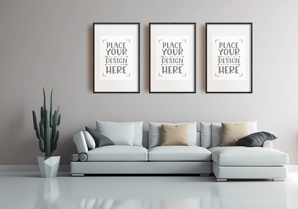 > Set of Three wall art mockup | FREE , 2×3 official Ratio PSD fully editable.